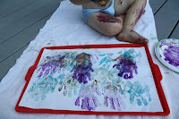 We recently did more finger painting on the deck...it's really fun for Hunter and not so much fun for us to clean up. Nick wrapped him like a burrito in a towel and took him straight to the shower after this mess!