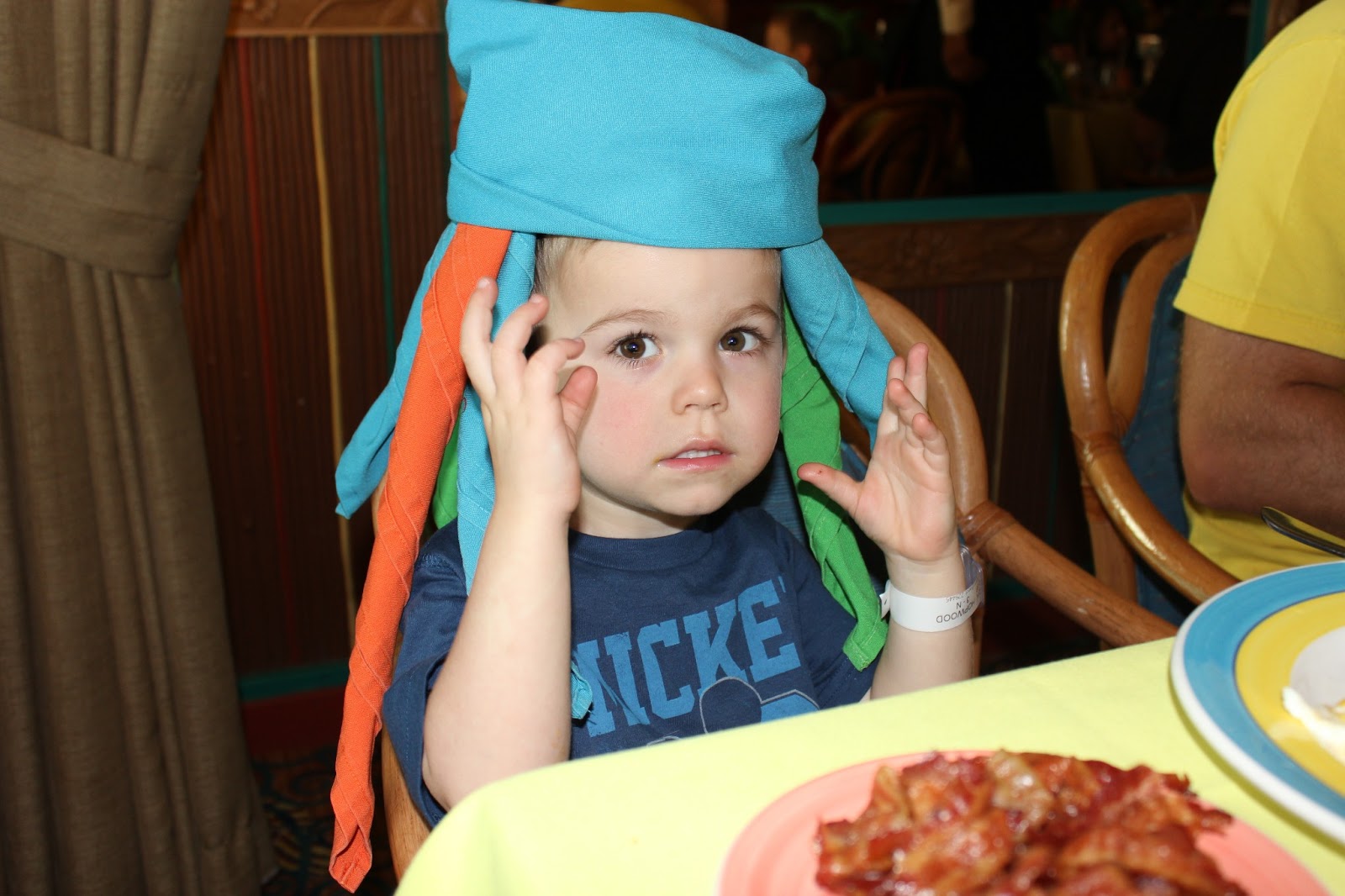 Day 3 (counting day we got on late afternoon) we were at sea again. It was Easter Sunday :) They had a character breakfast which was really awesome. All of the characters came to our table for pictures, we had a fun breakfast, and the waiters were goofy making us napkin hats.